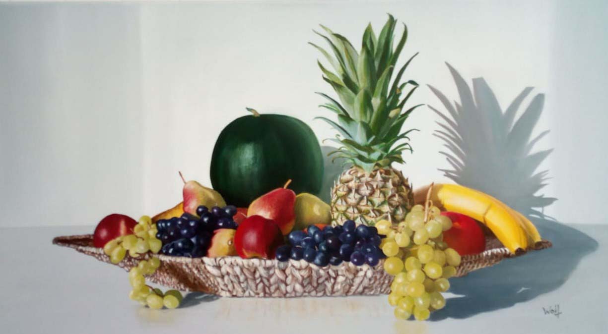 Dieses Stillleben "Obstkorb" habe ich im Auftrag auf besonderen Wunsch gemalt. Leinwandgröße ist 90 x 50 cm.