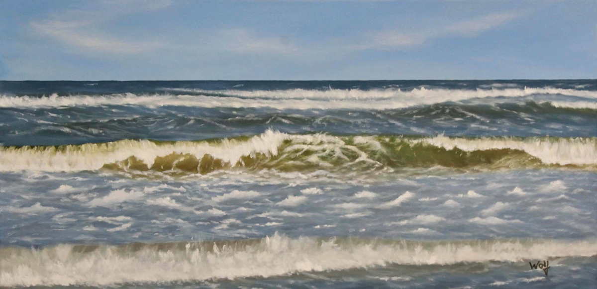 Strandabschnitt bei Hohenfelde an der Ostsee, Ölfarben auf Leinwand 80 x 40 cm.